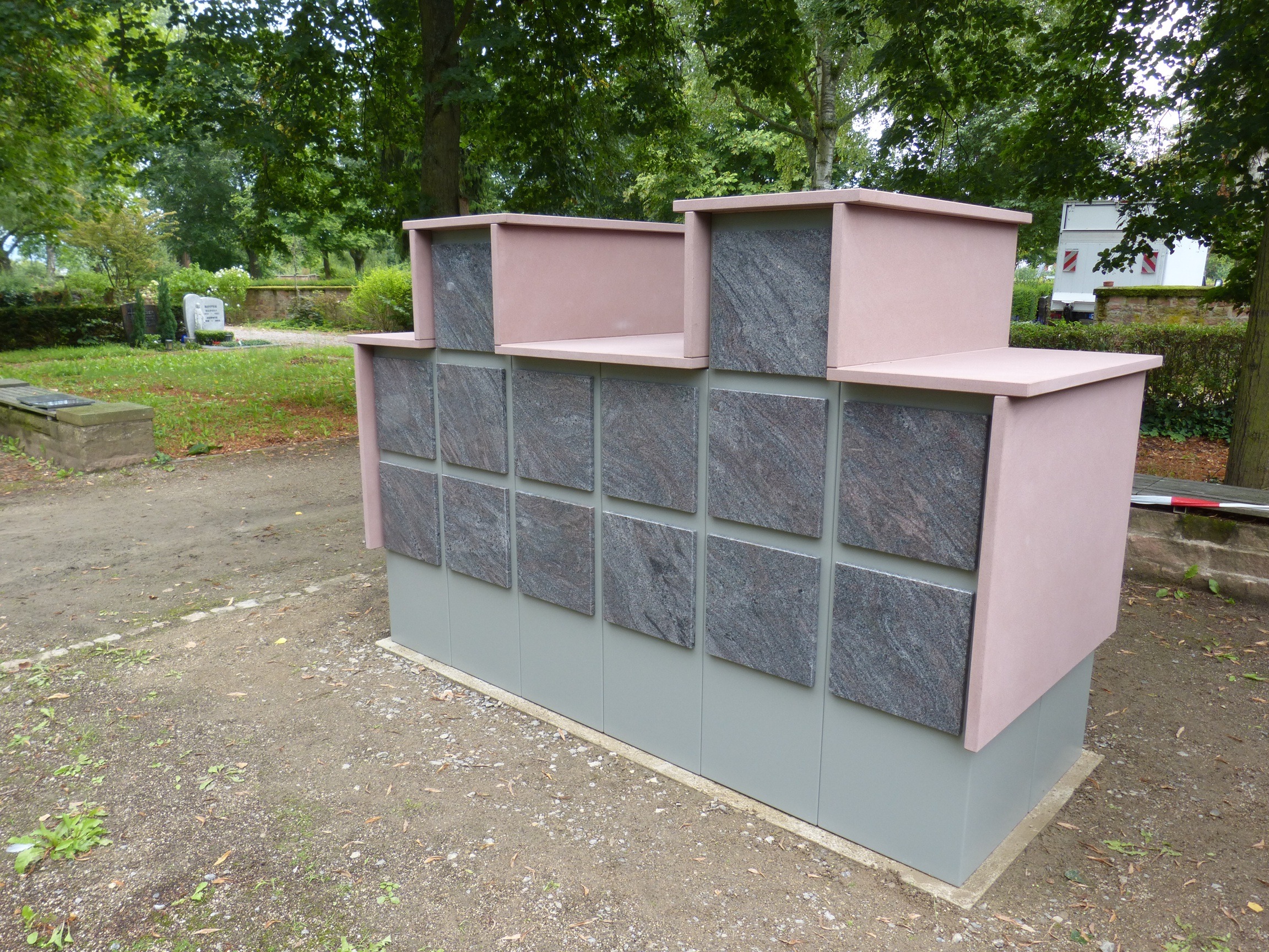 Urnenwand Urnenkammer Kolumbarium Sandstein Granit Edelstahl V+P Friedhofskonzepte